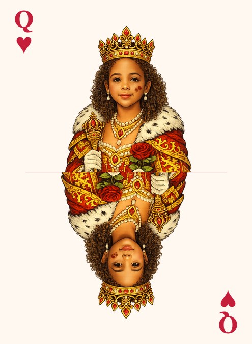 Das Gesicht deines Tieres wird in einen königlichen Hofkarten-Rahmen eingesetzt, passend zum gewählten Stil. Es sieht majestätisch aus.